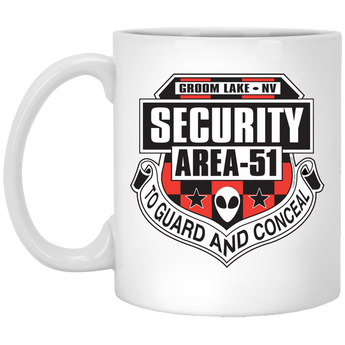 Area 51 coffee mug white (Black, Red font Groom lake NV )