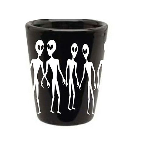 Area 51 shot glass black color (white font alien silhouettes )