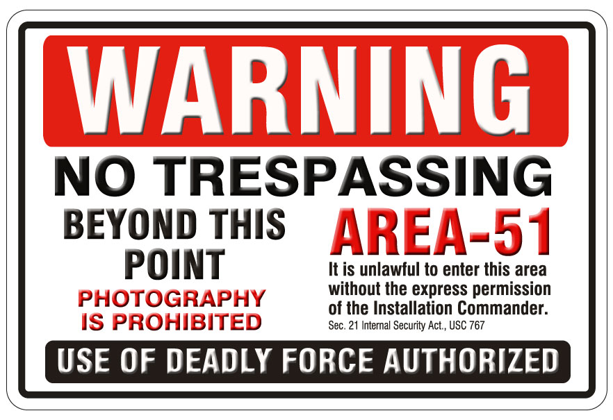 AREA 51 WARNING NO TRESPASSING METAL SIGN